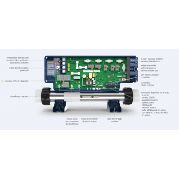 The in.ye5 supports 5 configurable outputs, a 4 kW water heater and a 12V light. Ideal for entry-level and mid-range spas.