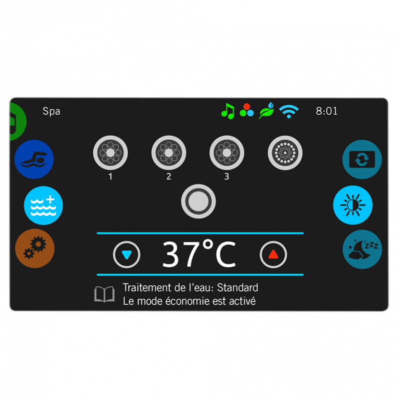 In.k1001 Keypad: The in.k1001 is a touchscreen keypad with an intuitive user interface, a powerful processor, vibrant colors, excellent water resistance and Wi-Fi* connectivity. Enhance the moments you spend in your spa with the in.k1000.