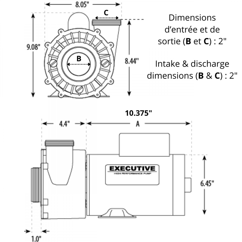 Inlet and outlet for 2"* piping for better performance and reduced noise.