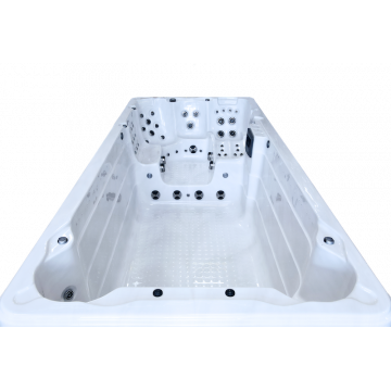 The TYPHON swim spa or pool spa from Titan Spas is designed from the start for both exceptional training sessions and moments of total relaxation in the hydrotherapy seats. Get the pinnacle of all features available with the TYPHON. You will have all the power you need to practice swimming in place as well as all the possible options to relax and enjoy your Titan Spas.