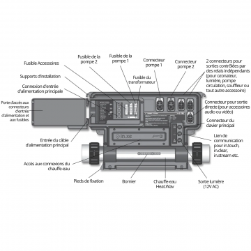 - Pack polyvalent pouvant prendre en charge jusqu'à 2 pompes, soufflerie, pompe de circulation, ozone et sortie stéréo