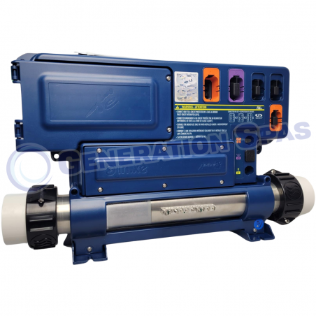 Contrôleur de spa de type Aeware in.Xe avec sortie pompe 1 à 2 vit., pompe 2 à 1 vit., soufflerie, ozonateur, connexion directe, (les voltages des sorties se décident par le câble de branchement in.Link), chauffe-eau 4.0 kW (inclus), connexion in.Link, fonctionne avec les claviers in.k200, in.k300, in.k450, in.k600 statique.